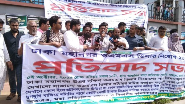 ঢাকা রেশনিং কর্তৃক ওএমএস ডিলার নিয়োগ এ অনিয়মের প্রতিবাদে বিক্ষোভ মিছিল ও মানববন্ধন অনুষ্ঠিত হয়। ৫ অক্টোবর সকাল সাড়ে দশটায় ঢাকা জুরাইন শ্যামপুর রেশনিং কার্যালয়ের সামনে ওএমএস ডিলার নিয়োগ বঞ্চিত সদস্যদের আয়োজনে এ বিক্ষোভ মিছিল ও মানববন্ধন অনুষ্ঠিত হয়। উক্ত মানববন্ধন অনুষ্ঠানে মো. কায়সার এর উপস্থাপনায় বক্তব্য রাখেন, আলমগীর হোসেন, তরিকুল ইসলাম সবুজ, নজরুল হক বিস্তারিত